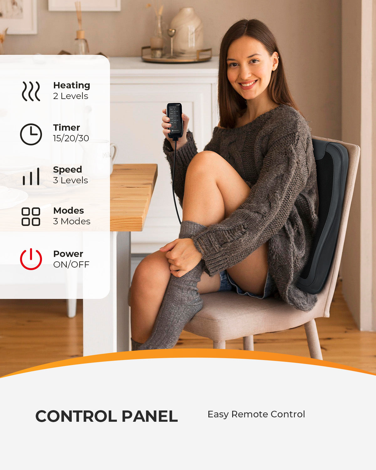 Pick Low or High speed with clear buttons. Sit back naturally — don’t press into the massager. Compared with smaller back massagers that require frequent repositioning, this back massager often more body areas.