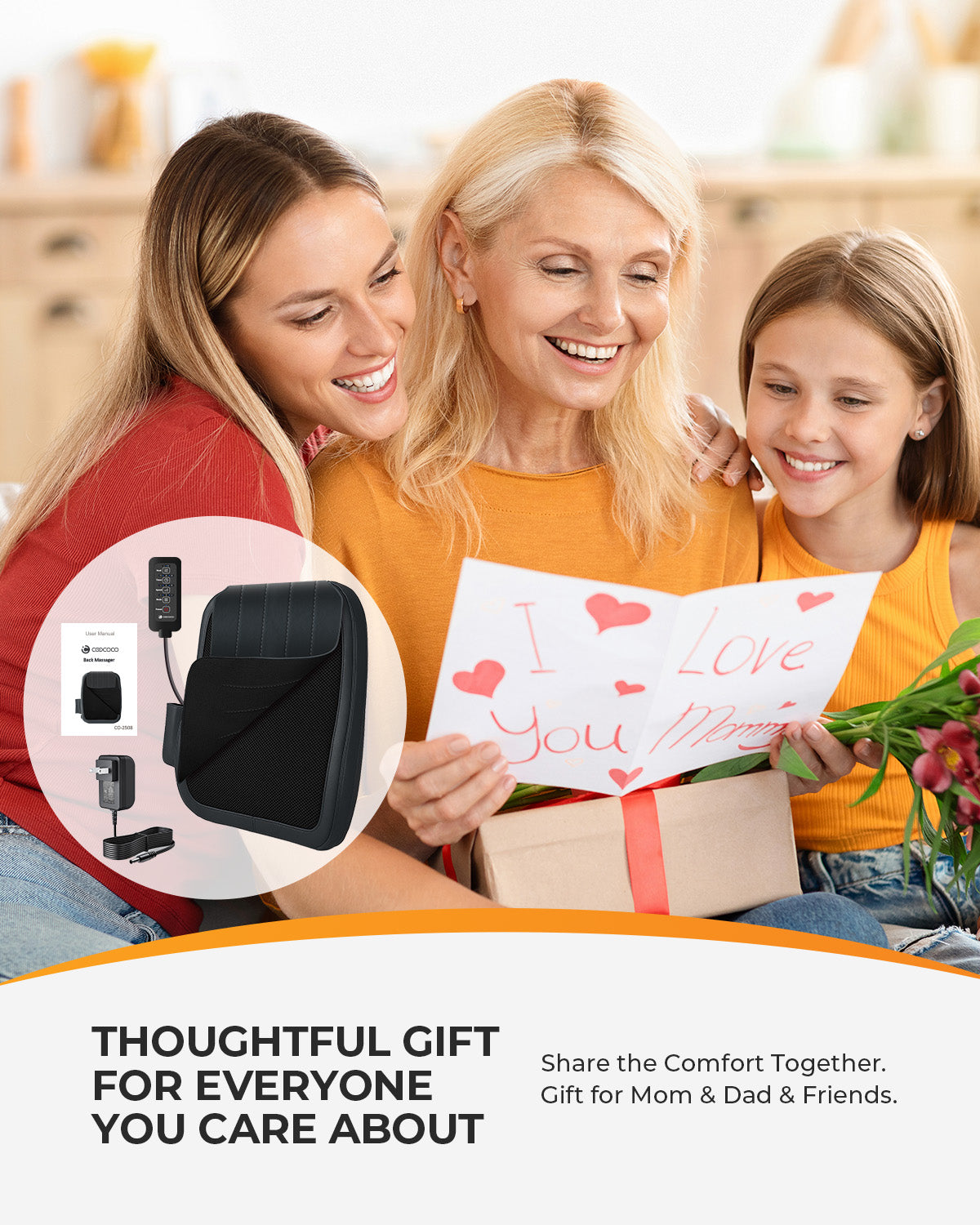 CooCoCo Back neck and shoulder relaxers can be used not only to relieve back and neck pain, but also to massage multiple body parts such as the abdomen, arms, thighs and calves. It is the perfect gift for women, men, dads, moms, husbands, wives and any loved ones to enjoy a deep tissue massage every day on their birthday, Mother's Day or Father's Day.