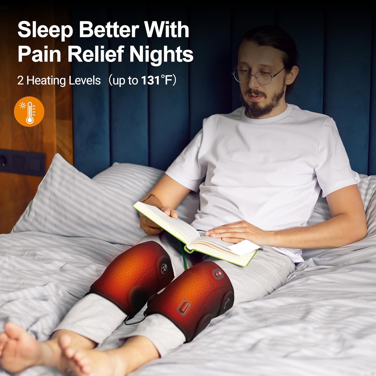- Knee heating pad with vibration: Equipped with two highly efficient vibration motors and five different vibration massage modes, this knee massager provides a soothing massage to the deep muscle tissues, which can help to alleviate muscle tension, knee pain, cold legs and other problems.
