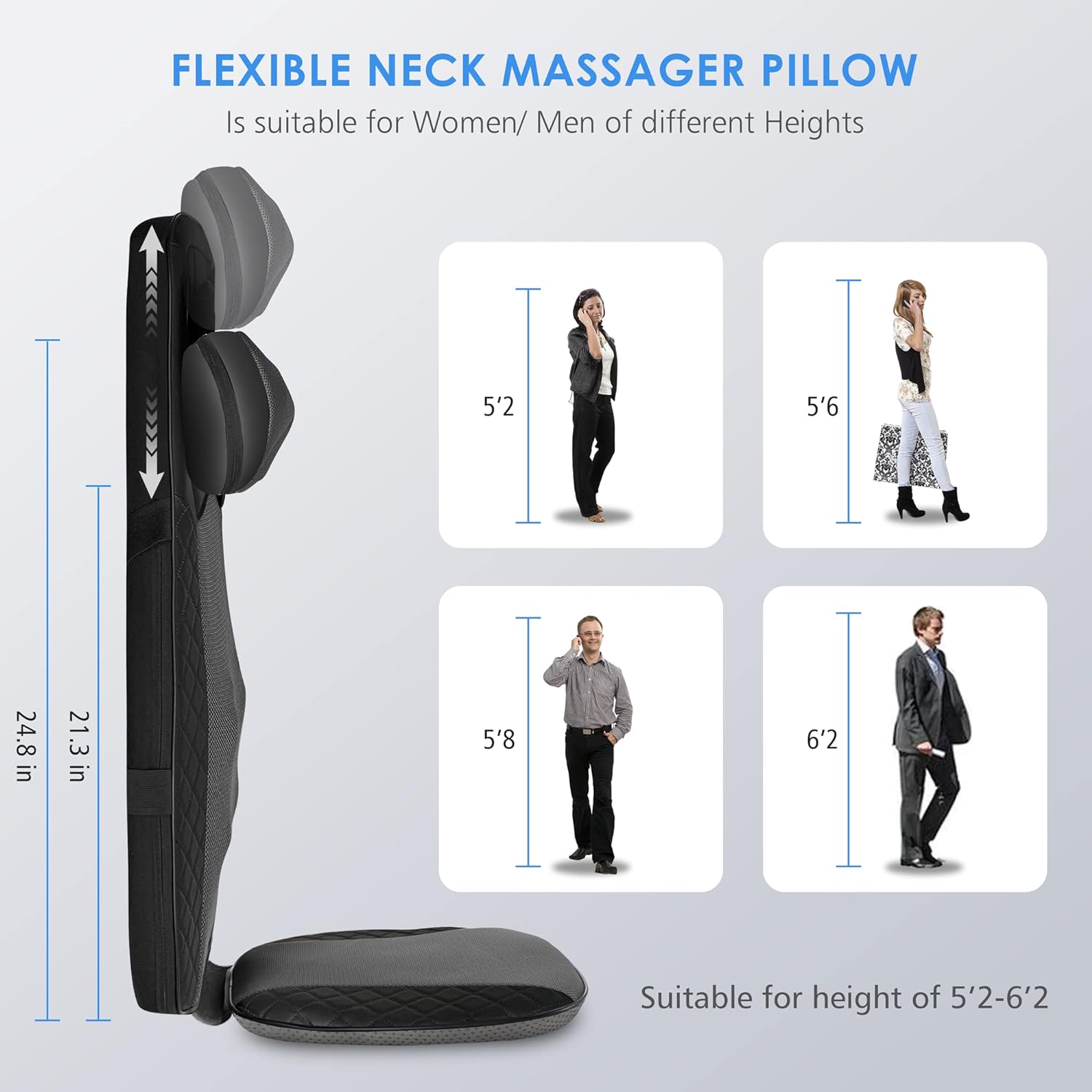 - Flexible Neck Massager - Massager for neck and back comes with an unique flexible Shiatsu neck massager pillow with Heat, which can be adjusted vertically to fit for women or men of different heights