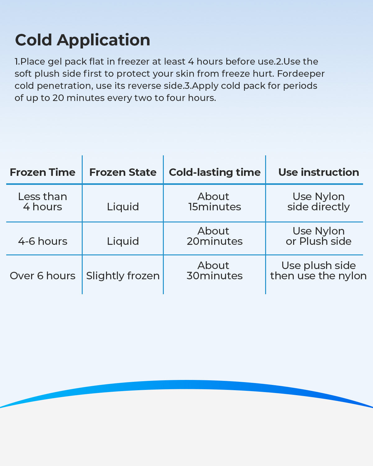 Dual Sided Foot Ice Pack Wrap - The soft plush side transmits soothing coldness to avoid condensation and frostbite without extra towel wrapping. The nylon side provides stronger coldness for effective pain relief. It is recommended to use the plush side first to help the skin gradually adapt to the cold.