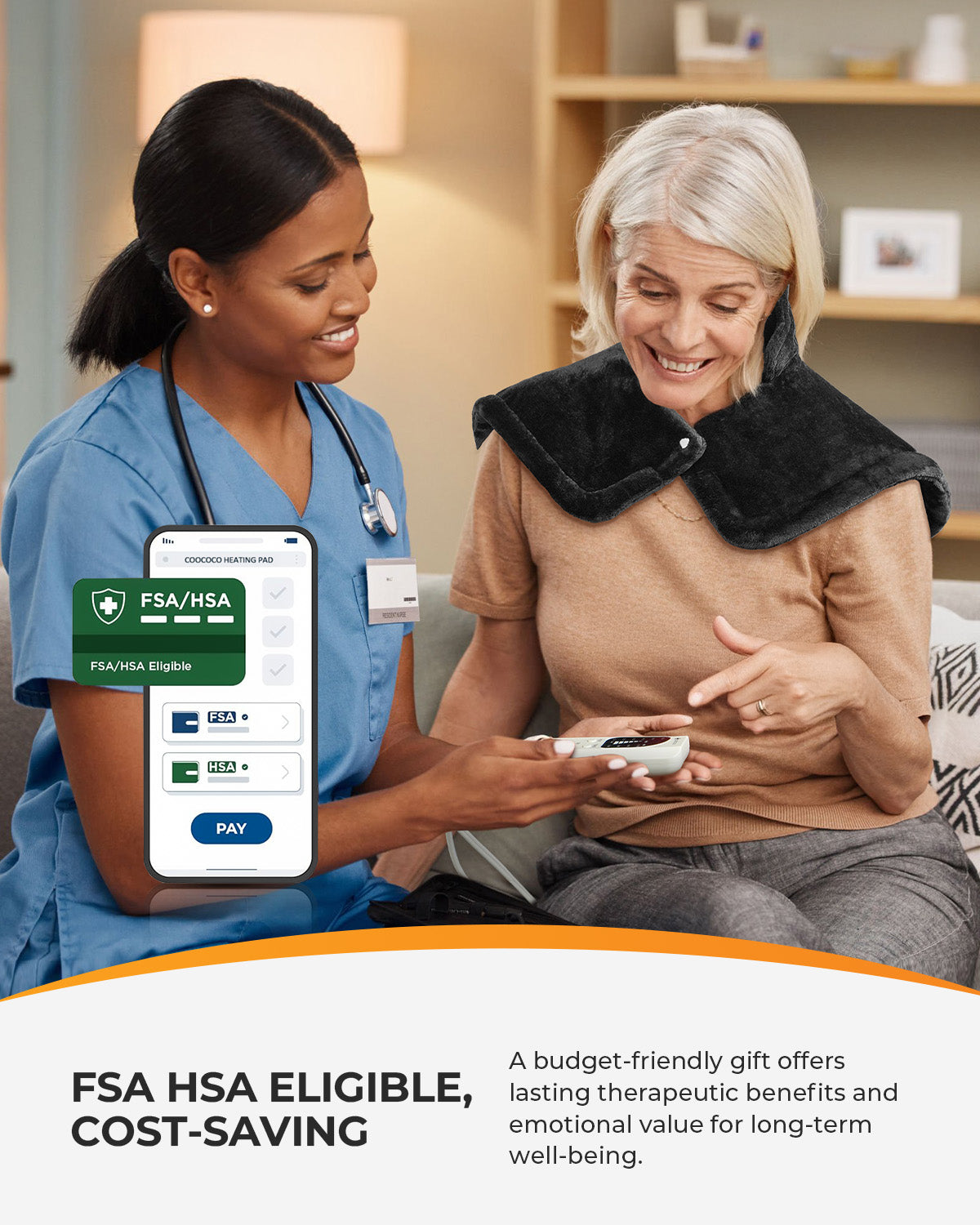 Use your FSA or HSA card to invest in long-term wellness. This ETL-certified heating pad offers safe, effective relief — making it a budget-friendly wellness gift that feels like a warm hug.